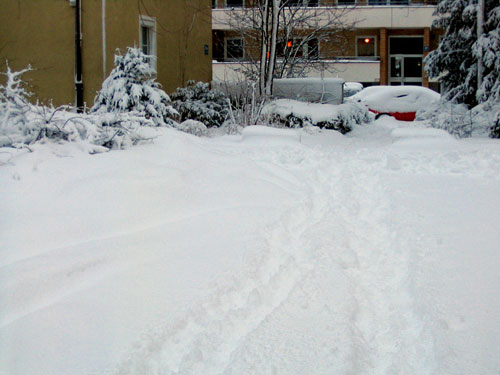 Die folgenden Bilder sind am Abend des 31. Januar 2005 und am Morgen des 1. Februar 2005 in München entstanden. Am Abend des 31. Januar begann es in München und Umland wieder stark und anhaltend zu schneien. Dazu wehte ein stürmischer Westwind, siehe das erste Foto. Der Schneesturm dauerte bei Temperaturen knapp über dem Gefrierpunkt bis in die Nacht hinein an und verursachte starke Verkehrsbehinderungen. Am nächsten Morgen lag in München-Friedenheim der Schnee 30 cm dick, und auch in der Münchner Innenstadt lagen ca. 25 cm Schnee, siehe das Foto unten.