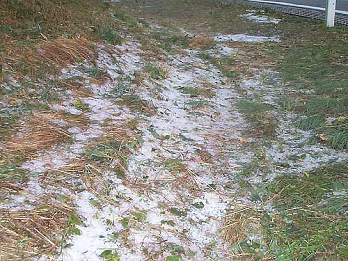 Der Sturm hatte einige Bäume hier im Münchner Süden entwurzelt oder abgebrochen. Durch den Hagel und Sturm lag hier viel Laub auf den Straßen, so daß diese richtig rutschig waren. Auf der Autobahn München-Salzburg hatte es einen langen Stau wegen des Unwetters gegeben. Hier sollen Hagelkörner teilweise tennisballgroß gewesen sein und bedeckten die ganze Fahrbahn. Auch waren dort viele Straßen wegen umgestürzter Bäume gesperrt. Das habe ich unterwegs im Radio gehört. Die Temperatur ist nach dem Gewitter von 30 Grad auf 20 Grad Celsius gesunken und durch den Hagel bildete sich teilweise dichter Bodennebel, siehe das Foto unten.
