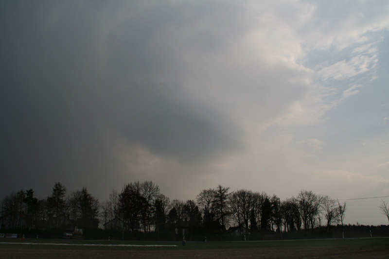Am Nachmittag und Abend des 5. April 2009 gab es im Raum München erneut Gewitter. Ich konnte im Münchner Westen und Südwesten zwischen 16:30 Uhr bis 18:30 Uhr insgesamt 3 Gewitter beobachten. Zwei leichte Gewitter mit wenigen Blitzen und ein drittes blitzintensiveres Gewitter. Das dritte Gewitter war das kräftigste, mit 15 in den Wolken versteckten Blitzentladungen in ca. 10 Minuten und Starkregen. Das Gewitter hatte einen erkennbar rotierenden, zeitweise tellerförmigen und korkenzieherförmig eingedrehten Aufwindbereich. Auch die vorherigen Gewitter hatten rotierende Aufwindbereiche.Video zu den Gewittern, Zeitraffer mit gut erkennbarer Rotation, Donner und Starkregen: