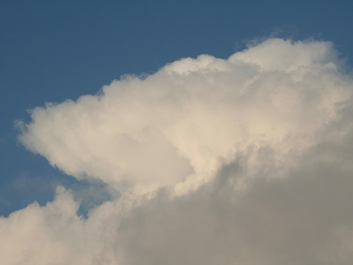 Am nächsten Tag, den 11. Februar 2006 hatte sich das Wetter weitgehend beruhigt. Es gab in München noch einzelne Graupelschauer bei einer Temperatur um den Gefrierpunkt und nur noch schwachem Wind. Die folgenden Bilder sind ab Mittag alle in München-Friedenheim entstanden. Nach den Graupelschauern wurde das Wetter am Nachmittag immer freundlicher, aber es gab weiterhin Cumuluswolken zu beobachten. Eine hochwachsende Cumuluswolke kam angeleuchtet von der tiefstehenden Sonne sehr langsam von Norden näher. Kurzzeitig bildete sich sogar ein kleiner Amboss an der Wolkenobergrenze, welcher aber nicht vereist war. Im dick eingeschneiten Münchner Westpark konnte ich noch einen schönen Sonnenuntergang und die Cumuluswolken im Abendlicht beobachten, siehe die beiden Fotos unten.
