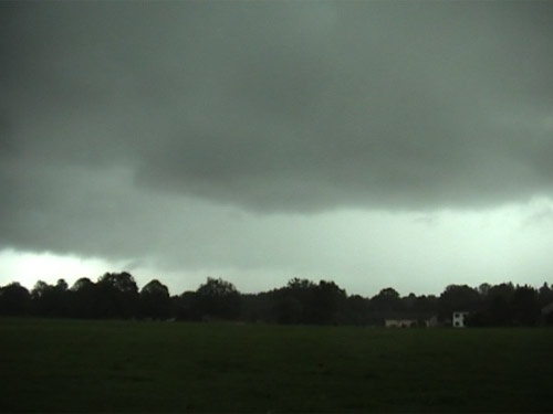 Heute war es bis zum späteren Nachmittag heiter bis wolkig und bis zu 24 Grad Celsius warm. Am Allgäuer Alpenrand bildete sich dann eine Gewitterzelle und ist unter Verstärkung nach Nordosten weitergezogen. Die folgenden Bilder von dem Gewitter habe ich ab ca. 17:15 Uhr bei Sauerlach im südlichen Landkreis München und weiter in Richtung Weyarn aufgenommen. Zu der Zeit näherte sich rasch von Südwesten aus den Bergen heraus die Gewitterzelle. Es gab immer wieder Donnergrollen, die Wolkenfront war bedrohlich dunkel und auch tiefziehend. In der Nähe von Weyarn kam der Niederschlagskern des Gewitter herangezogen, siehe die beiden Fotos unten. Nun fielen dicke Regentropfen herab und ein stürmischer Westwind kam auf.