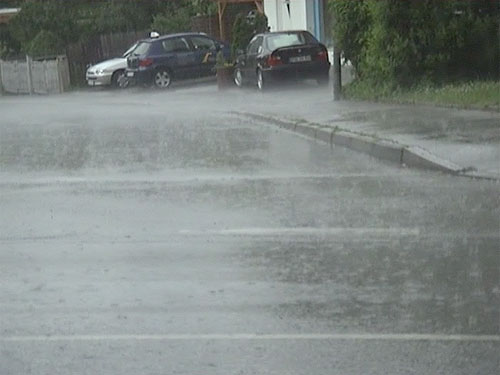 Das Niederschlagsgebiet des Gewitters zog nun knapp an meinem Standort vorbei, und unter Verstärkung in Richtung Starnberg weiter. Nach dieser Beobachtung bin ich ein paar Kilometer die Hauptstraße in Richtung Starnberg gefahren, und in das Niederschlagsgebiet zu gelangen. Am nördlichen Ortsrand von Starnberg und weiter in der Starnberger Innenstadt gab es dann kräftigen Platzregen. Bedingt durch den Starkregen bildeten sich schnell Wasseransammlungen auf den Straßen. Blitzentladungen konnte ich aber keine weiteren mehr beobachten. Nach ungefähr 10 Minuten wurde der Niederschlag rasch leichter, und das Niederschlagsgebiet zog unter Abschwächung weiter in Richtung Südwesten. Von Nordosten lockerten die Wolken dann wieder auf, siehe das Foto unten.