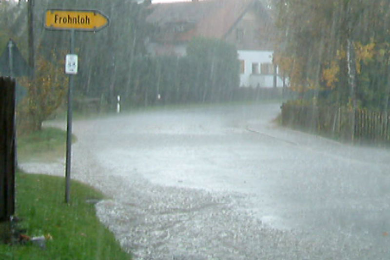 Straßen in Unterbrunn im Wasser nach dem Gewitterregen