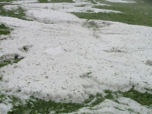 Diese Bilder sind nach dem Unwetter in dem Ort Vagen von Dominik Sennes, Martin Schechner und Christian Schraml aufgenommen worden. Der Hagel lag zum Teil 35 cm dick, und es gab hier durch die Orkanböen viele umgestürzte Bäume. Bald nach dem Unwetter gab es hier in der Gegend dichten Bodennebel, siehe das Foto unten. Nach Angabe von Dominik Sennes war hier die Bodentemperatur auf 0 Grad Celsius gefallen.