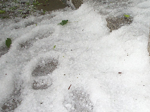 Die drei Fotos sind mir freundlicherweise von Ullrich Kiesing zugeschickt worden. Die Fotos hat er nach dem Hagelunwetter in der Gegend bei Straßlach-Dingharting aufgenommen, und zeigen die Hageldecke sowie die abgeschlagenen Blätter.